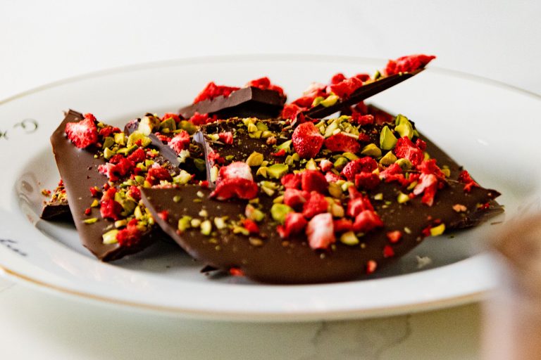 Raspberry and Pistachio Chocolate Christmas Bark